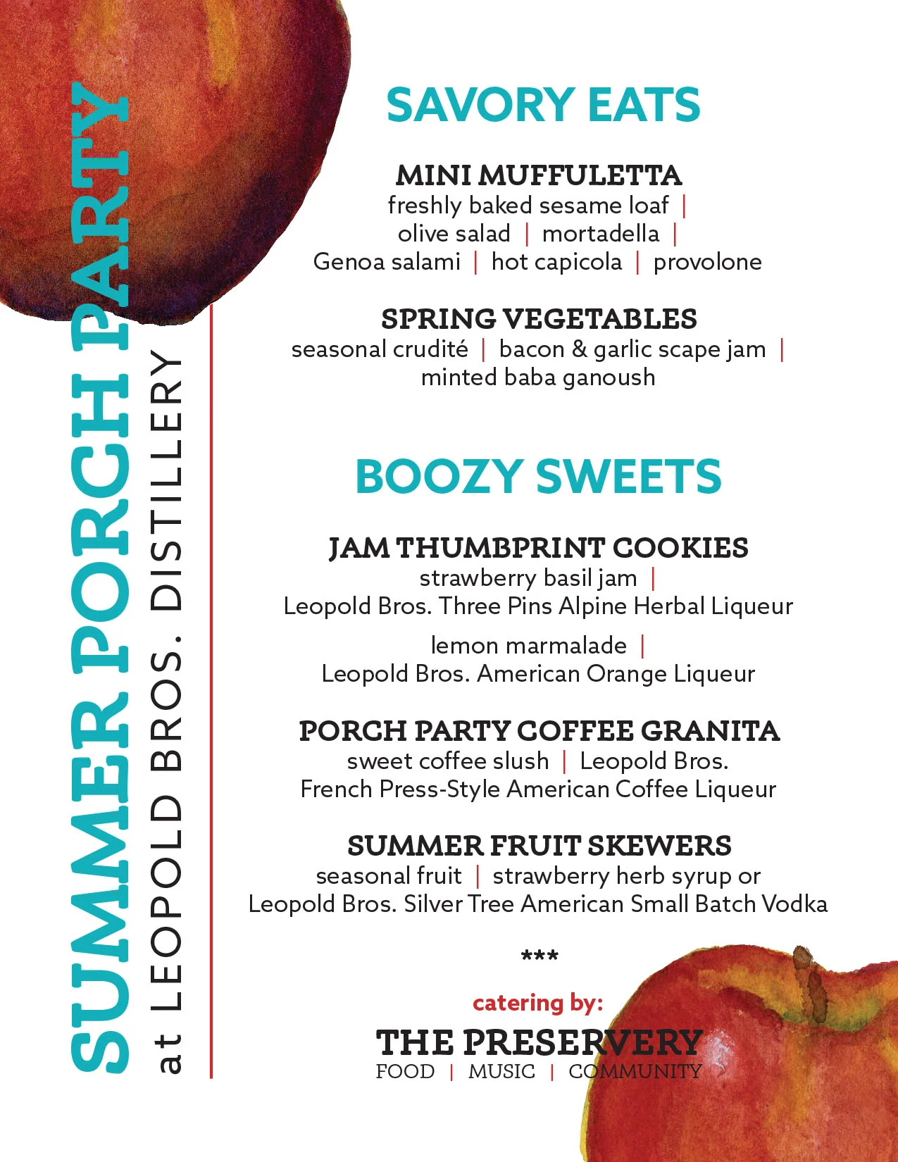 Join us this Friday, June(!) 19th at 7pm for all these delicious items from The Preservery, cocktails and samples from Leopold Bros., and a live woodwind performance from the Colorado Symphony. What better way to kick off a great summer full of food, music and community?